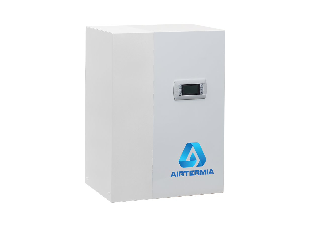 Versione con unità interna (stazione idraulica) compatta Ain con dispaly di regolazione facile ed intuitivo, valvola a tre vie per produzione di acqua calda sanitaria, resistenza elettrica di supporto, scambiatore intermedio di separazione circuido idraulico e pompa di rilancio circuito secondario.