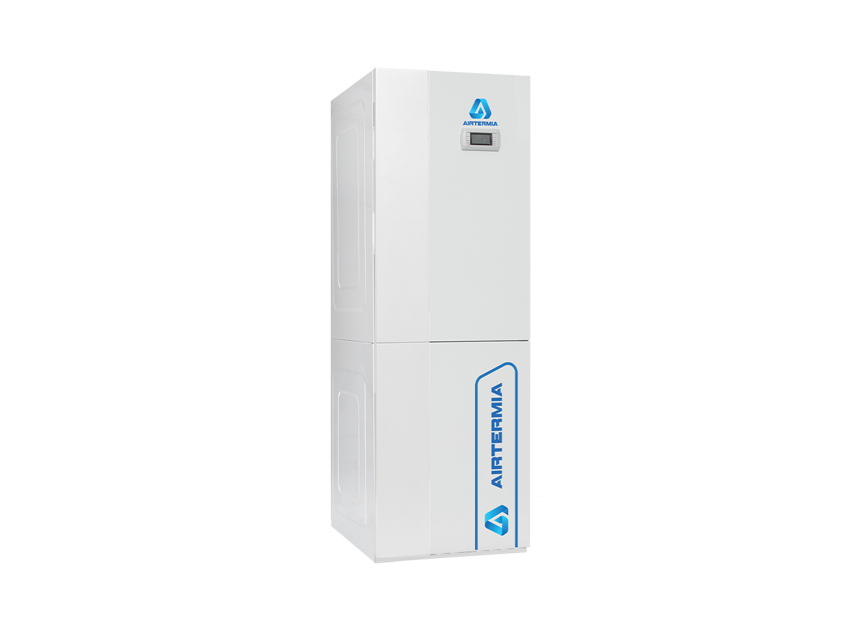 Versione con unità interna (stazione idraulica) con boiler integrato da 165 l AinOne con dispaly di regolazione facile ed intuitivo, resistenza elettrica di supporto, scambiatore intermedio di separazione circuido idraulico, pompa di rilancio circuito secondario e vasi di espansione.