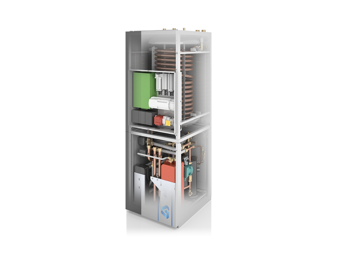 Versione AinOne ad alta efficienza con gas ecologico R290 e compressore Scroll dotata di bollitore integrato da 165l, regolazione con display facile ed intuitivo, valvola a tre vie per produzione di acqua calda sanitaria, resistenza elettrica di supporto, pompe di rilancio, gruppi di sicurezza.
